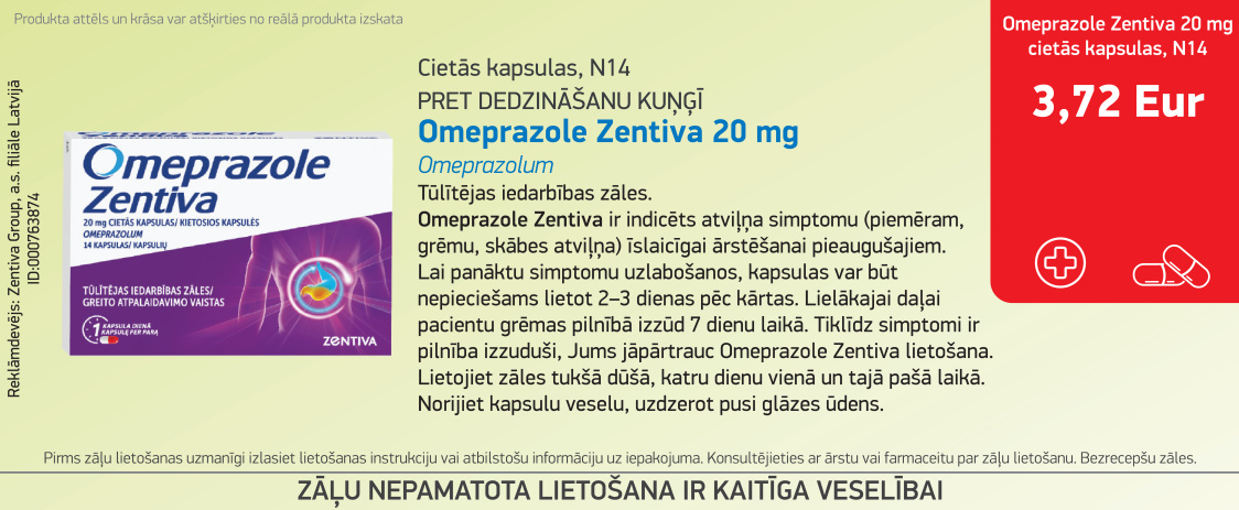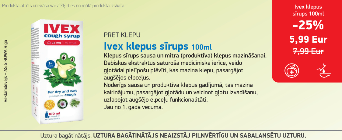 Регулярные цены продукта можно узнать в ближайшей аптеке сети Latvijas aptiekas.